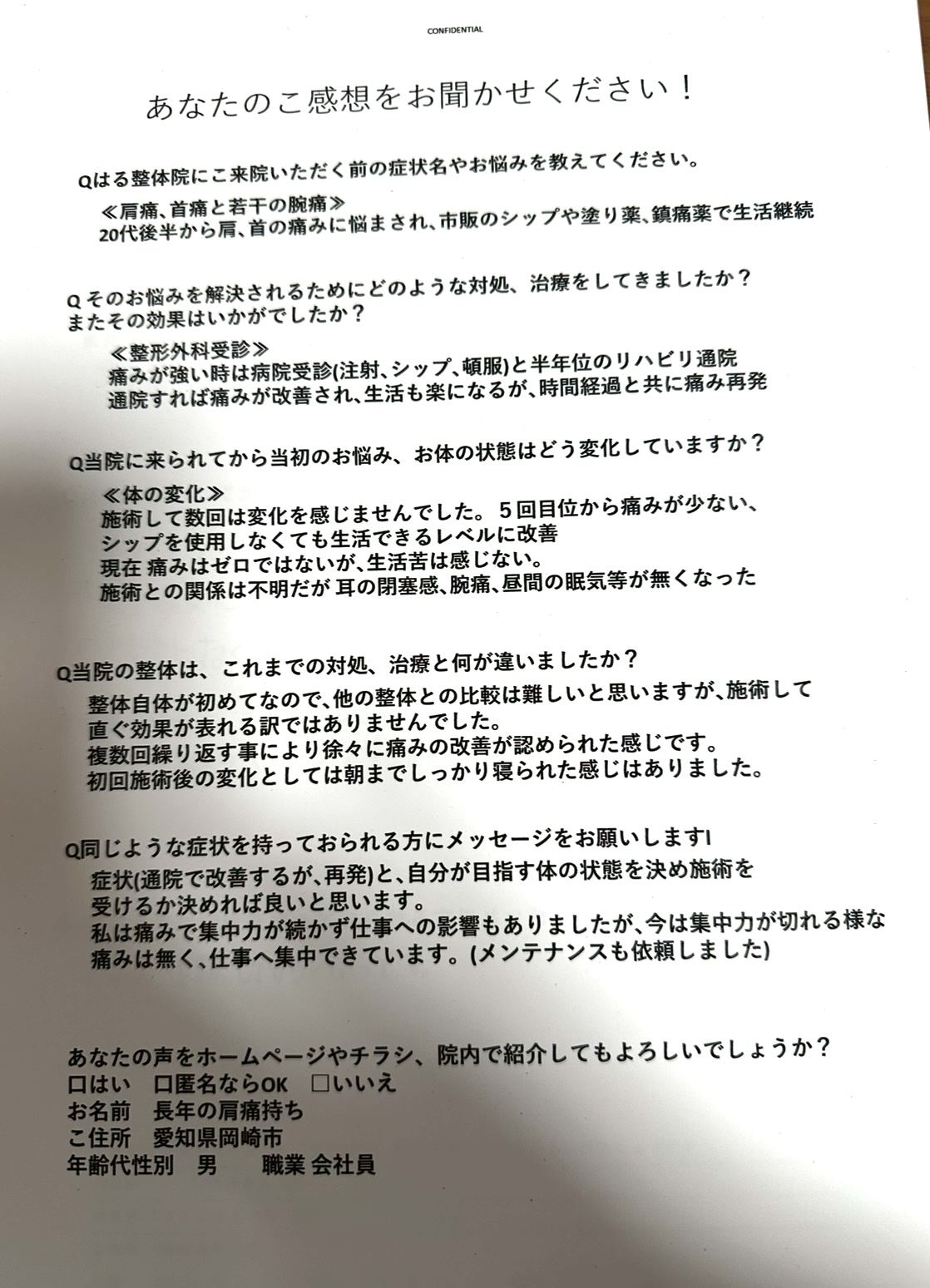 病院や他院で治らないと諦めている方も、多くの方が改善に向かうので、喜びの声を多く頂いております。